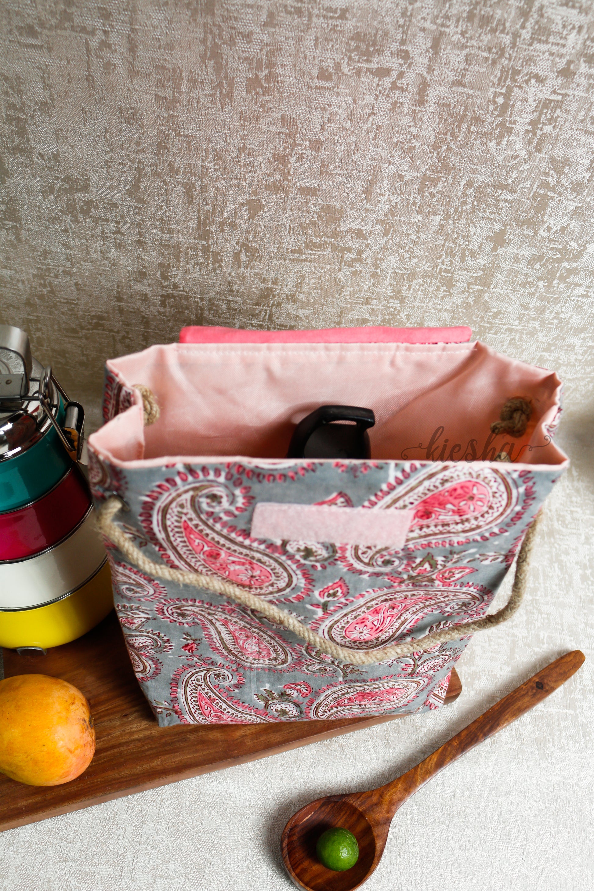 Has an oil resistant plastic cloth lining inside hence does not let any spilled food leak outside the bag.